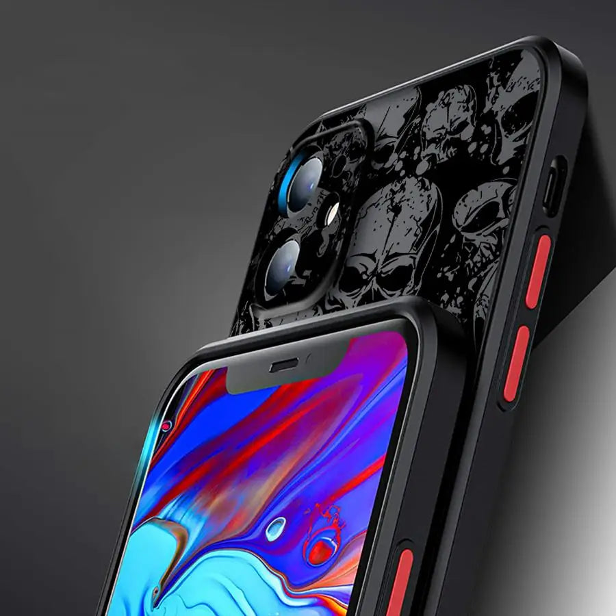 Make a bold statement with this edgy skull-patterned iPhone case. Combining gothic aesthetics with superior protection, this case is perfect for those who dare to be different.